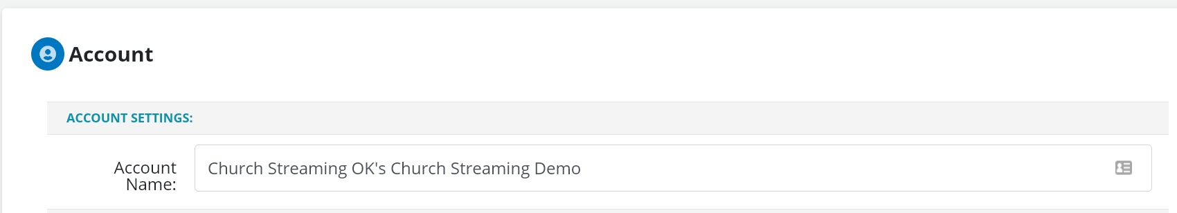 - The first section under your account setting is your account name. You will be able to update this to reflect the name of your church.