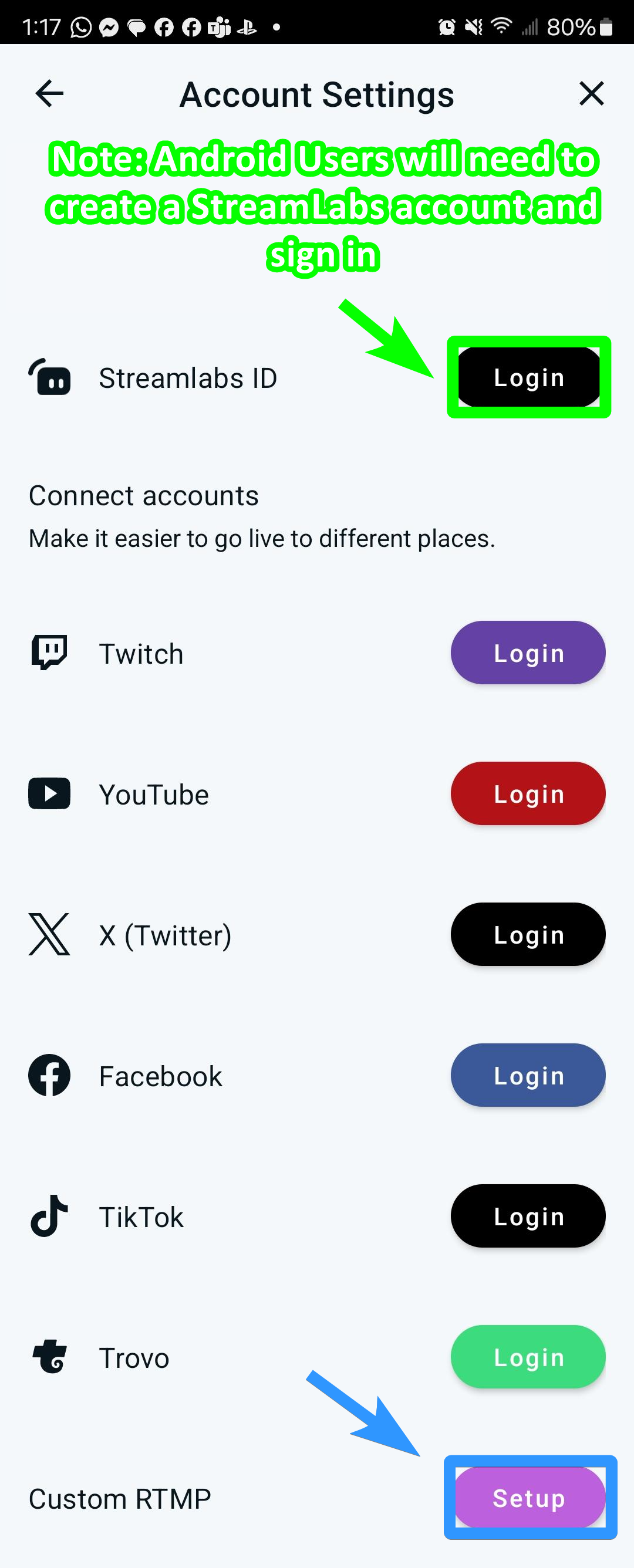 Android devices will need to create a StreamLabs account at Step 5
