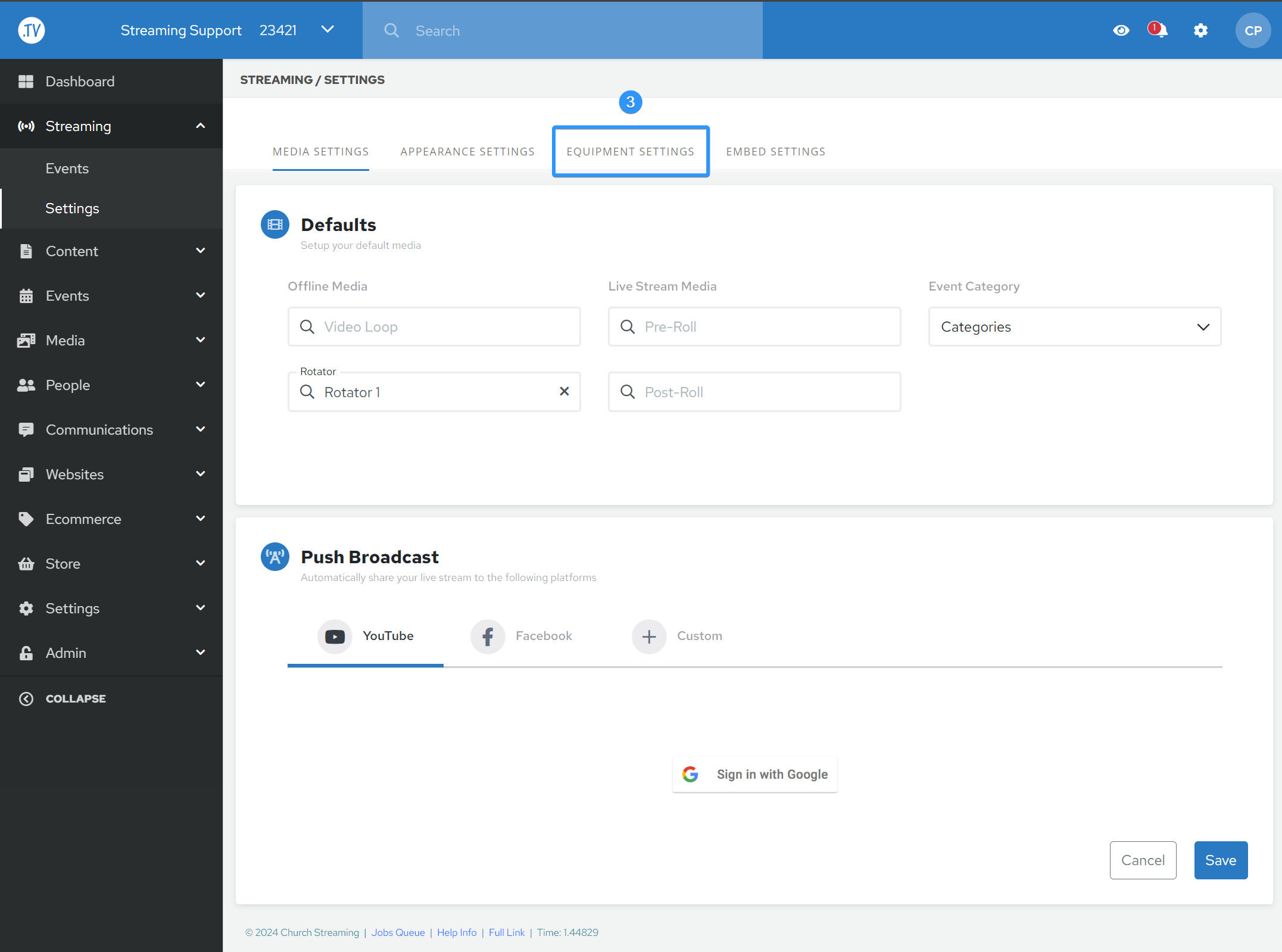 3. Click the "Equipment Settings" Tab