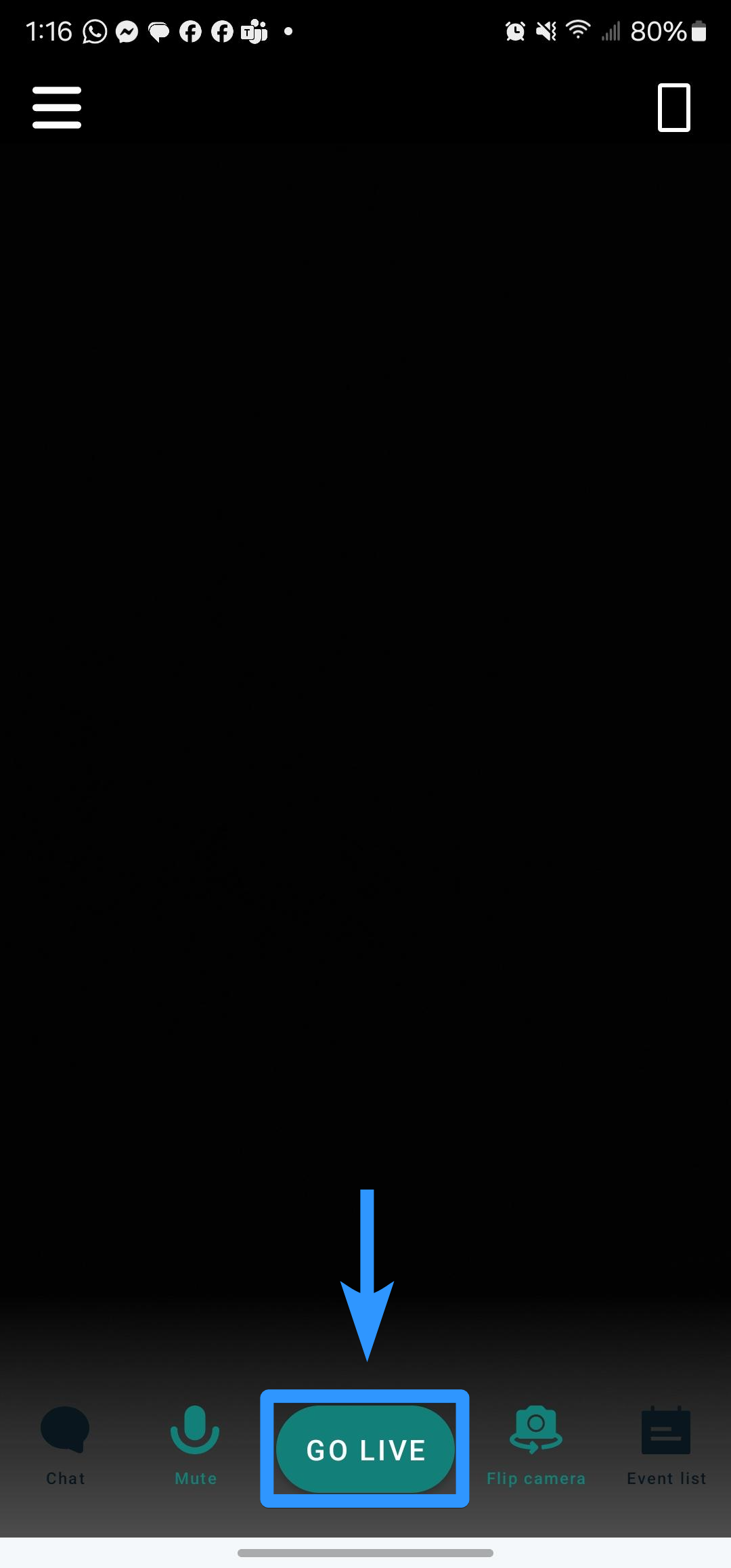 2. With your channel now online, from your StreamLabs app, simply click the "GO LIVE" button at the bottom of your screen to go live and begin streaming