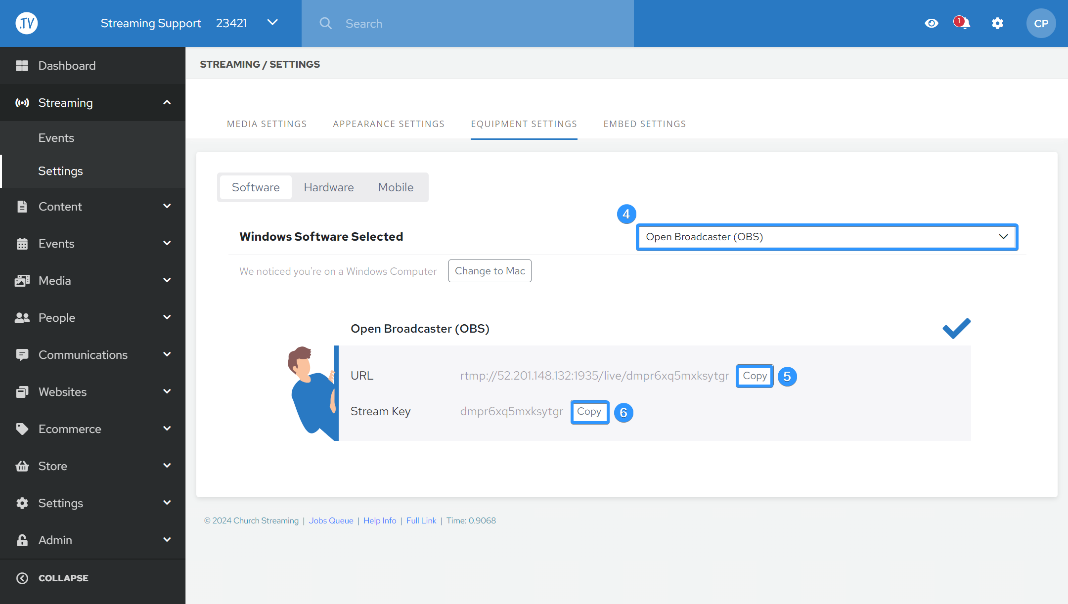 6. Copy your Streaming key and write it down for later