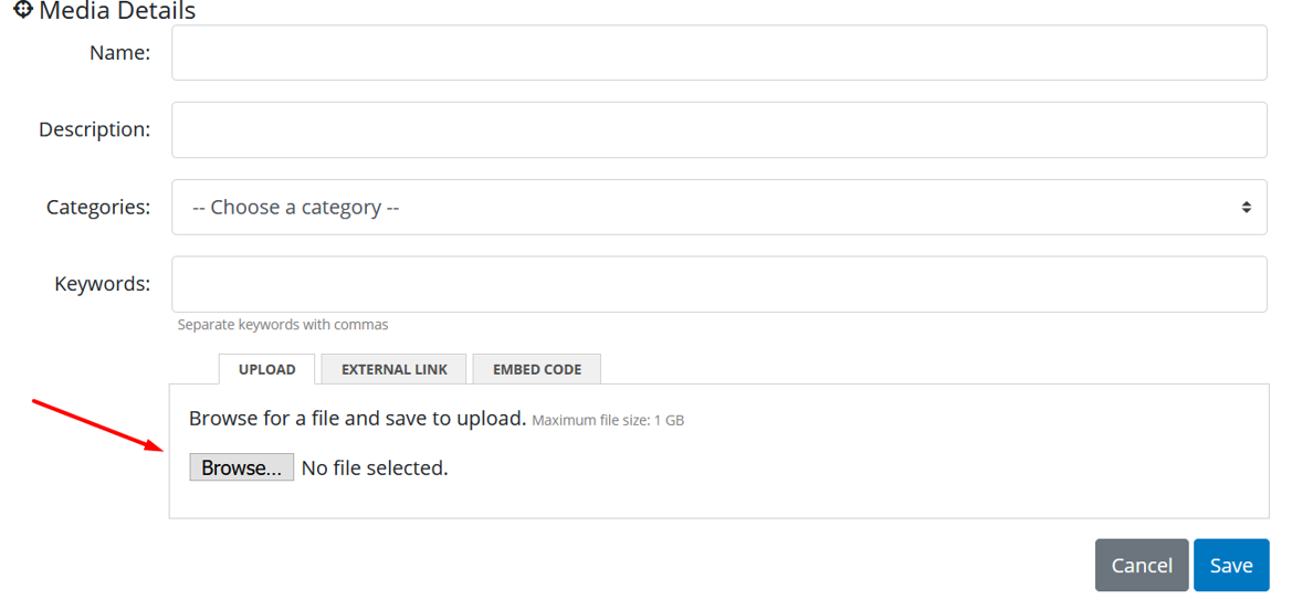 - From here click the “Add New Media" button in the upper right hand corner of the screen